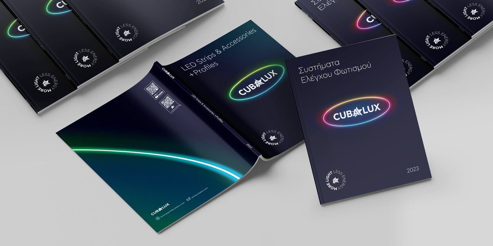 Σειρά είχε η διαμόρφωση των προϊοντικών καταλόγων της σειράς στους οποίους επικρατεί ένα μονόχρωμο σκούρο φόντο και το κέντρο κυριαρχεί το λογότυπο, το οποίο περικλείεται σε ένα οβάλ γραμμικό αφαιρετικό σχήμα, του οποίου το περίγραμμα φωτίζεται όπως οι ταινίες LED και αλλάζει αποχρώσεις ανάλογα με το έντυπο.