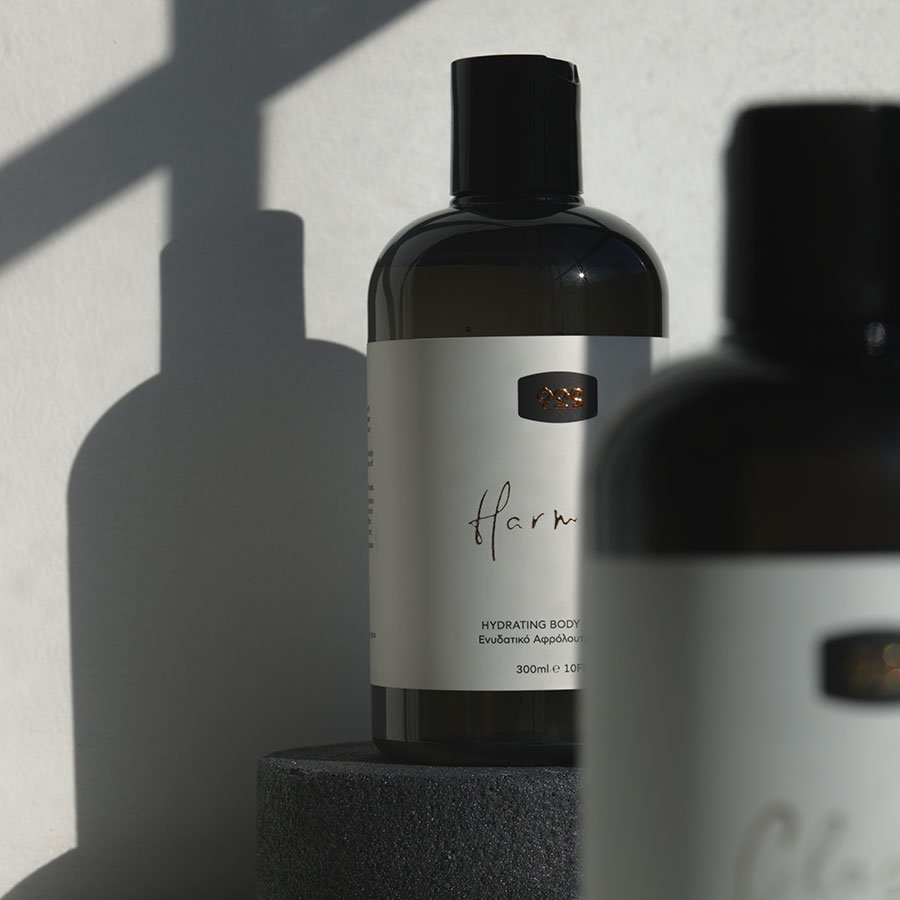 Ξεκινήσαμε με τον σχεδιασμό του λογοτύπου, το οποίο κινήθηκε σε μία λιτή μορφή με έμφαση στην ονομασία. Επιλέχθηκε η ελληνική γραφή με μία ιδιαίτερη γραμματοσειρά η οποία έχει το αρχαιοελληνικό στοιχείο προσαρμοσμένο σε μία μοντέρνα εκδοχή. Για την εύκολη προσαρμογή του σήματος καθώς και για να υποδηλώσει την ταυτότητα του προϊόντος, η ονομασία τοποθετήθηκε σε ένα απλό γεωμετρικό σχήμα το οποία θυμίζει το σαπούνι.