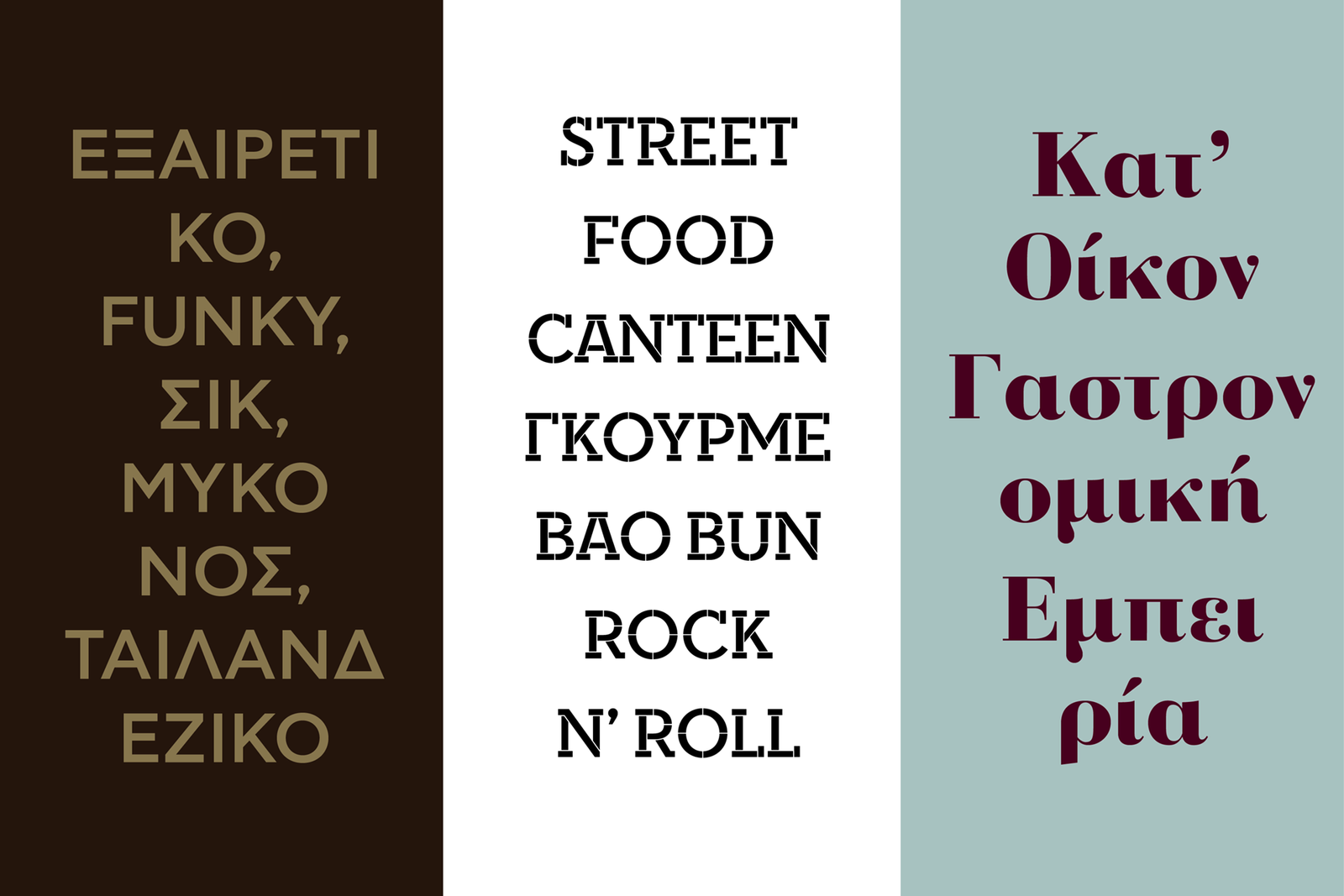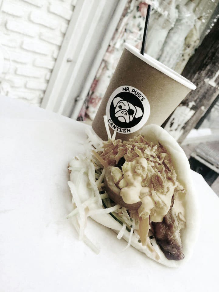 Η φήμη του πλέον επιτυχημένου πιάτου του “Bao Buns” ταξίδεψε μέχρι την Αθήνα και έγινε παρέα με τα φημισμένα churros το αγαπημένο street food των Αθηναίων. Για την Mr Pug’s Canteen, o Mr Pug μεταμορφώθηκε σε πειρατή σε μία ασπρόμαυρη πιο street style εκδοχή με έντονη μοντέρνα γραμματοσειρά.