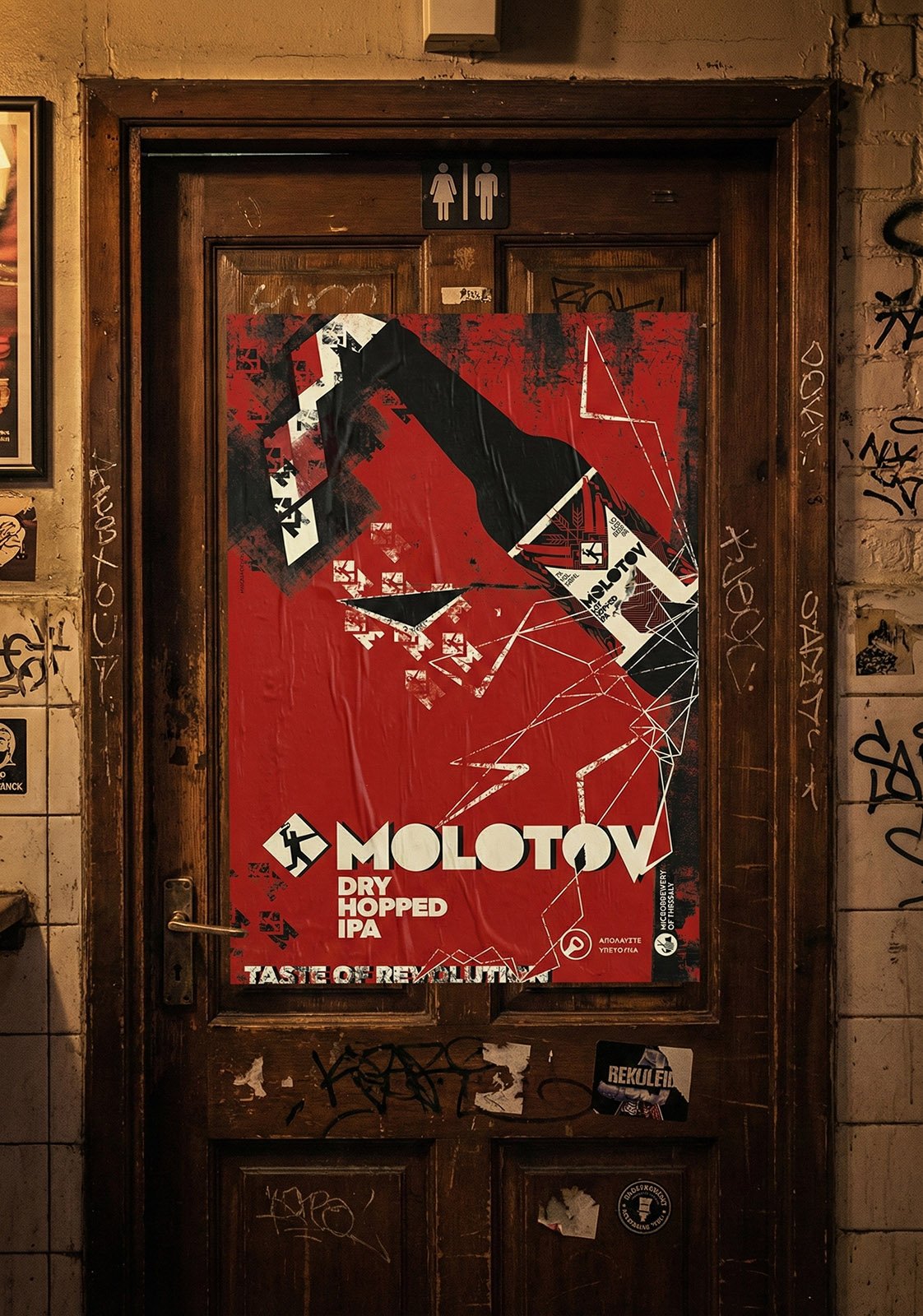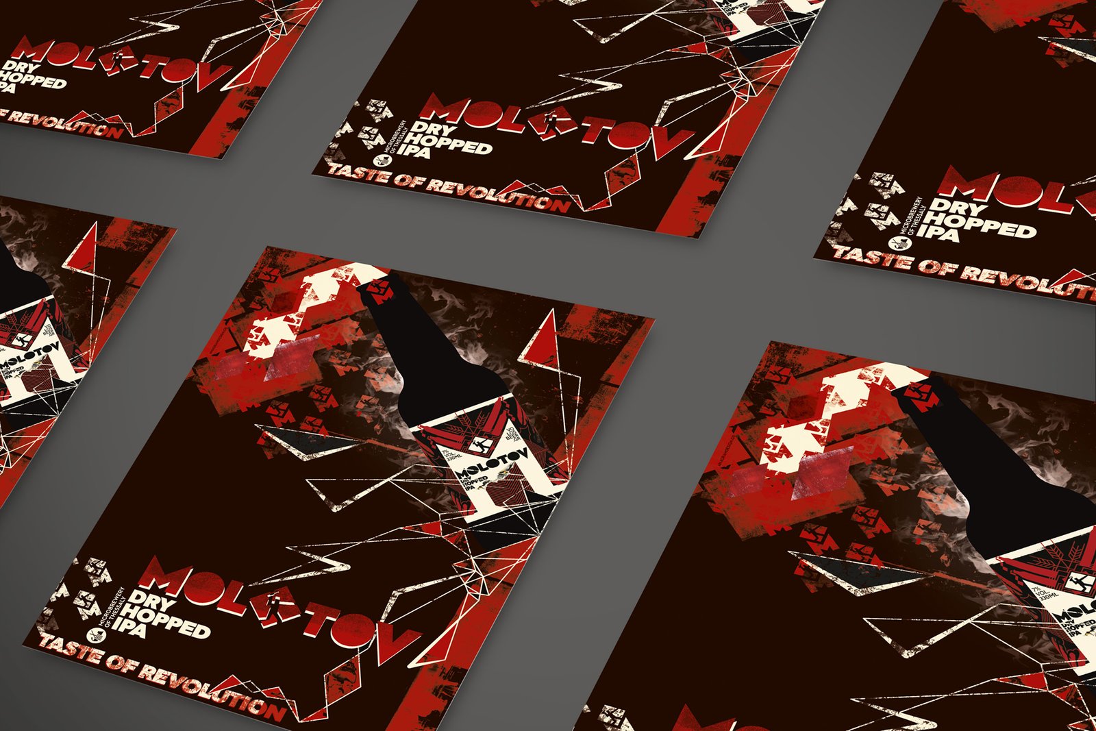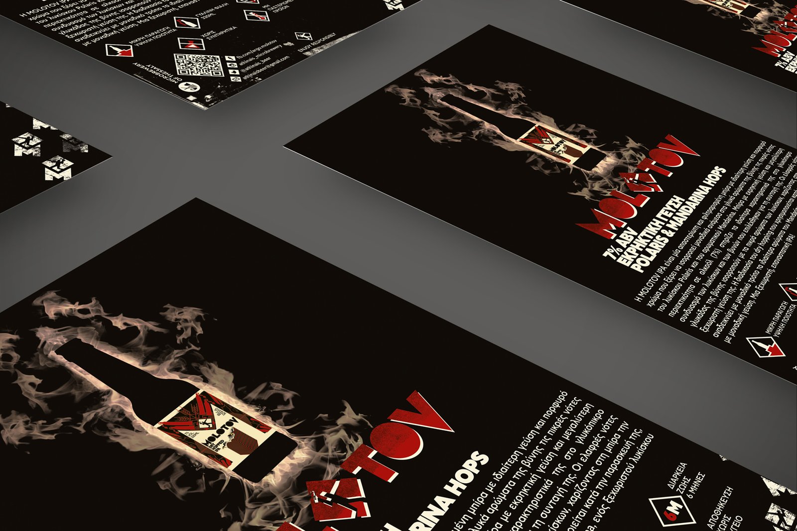 Ο σχεδιασμός της Molotov IPA αντλεί έμπνευση από τη γλώσσα της εξέγερσης και την ωμή ενέργεια της νεανικής κουλτούρας. Η μπίρα παρουσιάζεται μέσα από μια εικαστική σύνθεση που θυμίζει αφίσα δρόμου: δυναμική παλέτα, θραύσεις, στιβαρή τυπογραφία και ένα εικονίδιο-σχόλιο για το θάρρος και τη δράση. Η συνολική αισθητική μετατρέπει την εμπειρία της μπίρας σε κάλεσμα για έκφραση, δημιουργία και ανατροπή — με μια δόση παιχνιδιάρικης έντασης που μιλάει άμεσα στο νεανικό κοινό.